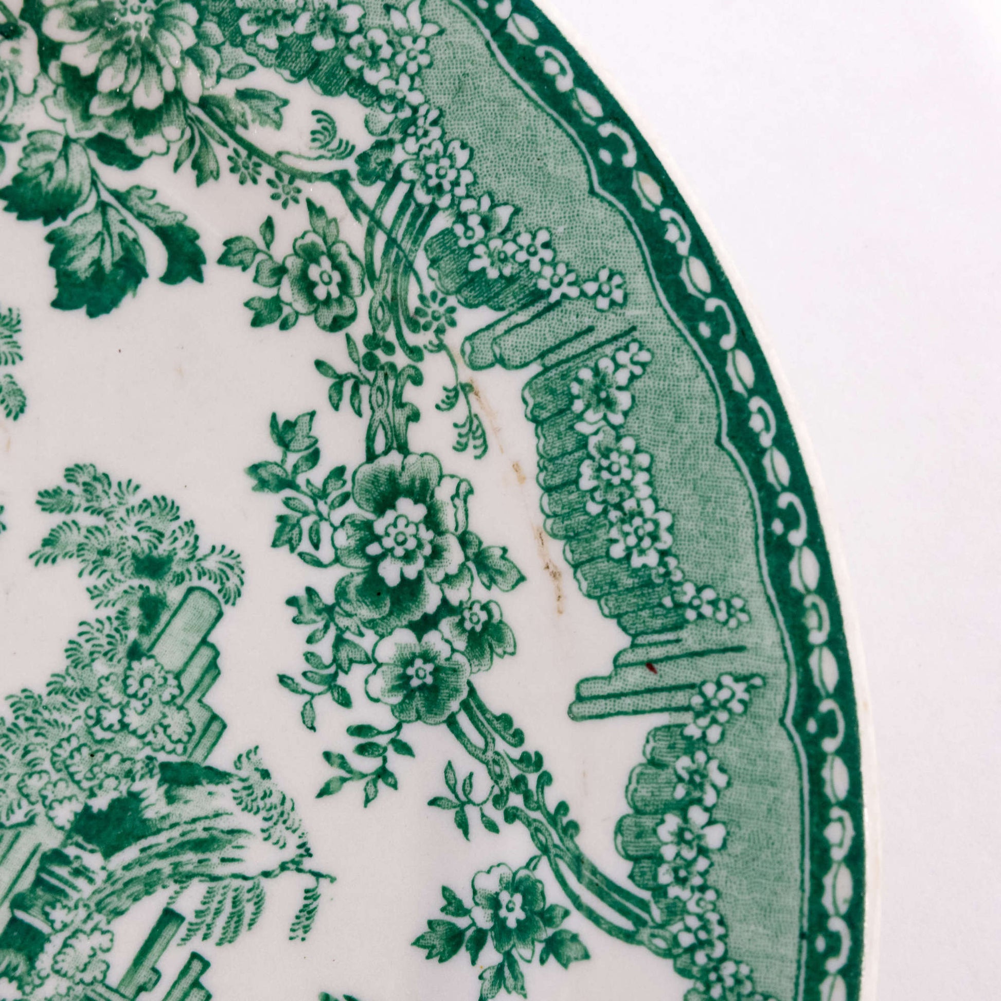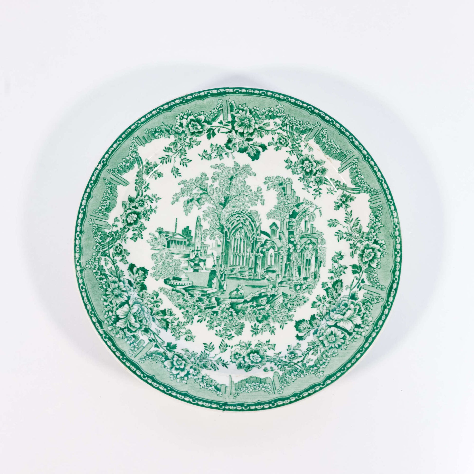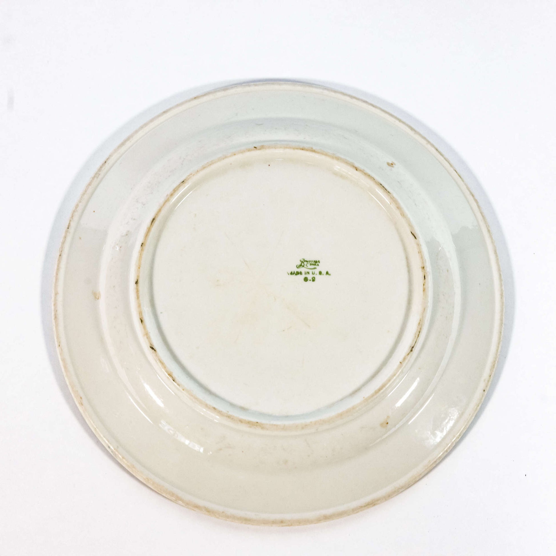 Vintage Dinnerware Buffalo China Green & White Transferware Plate