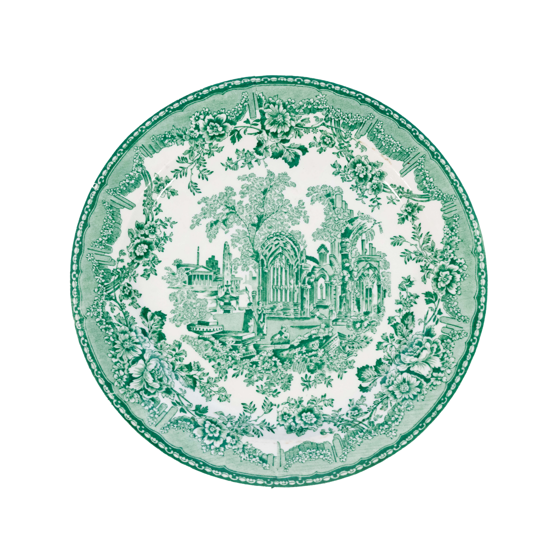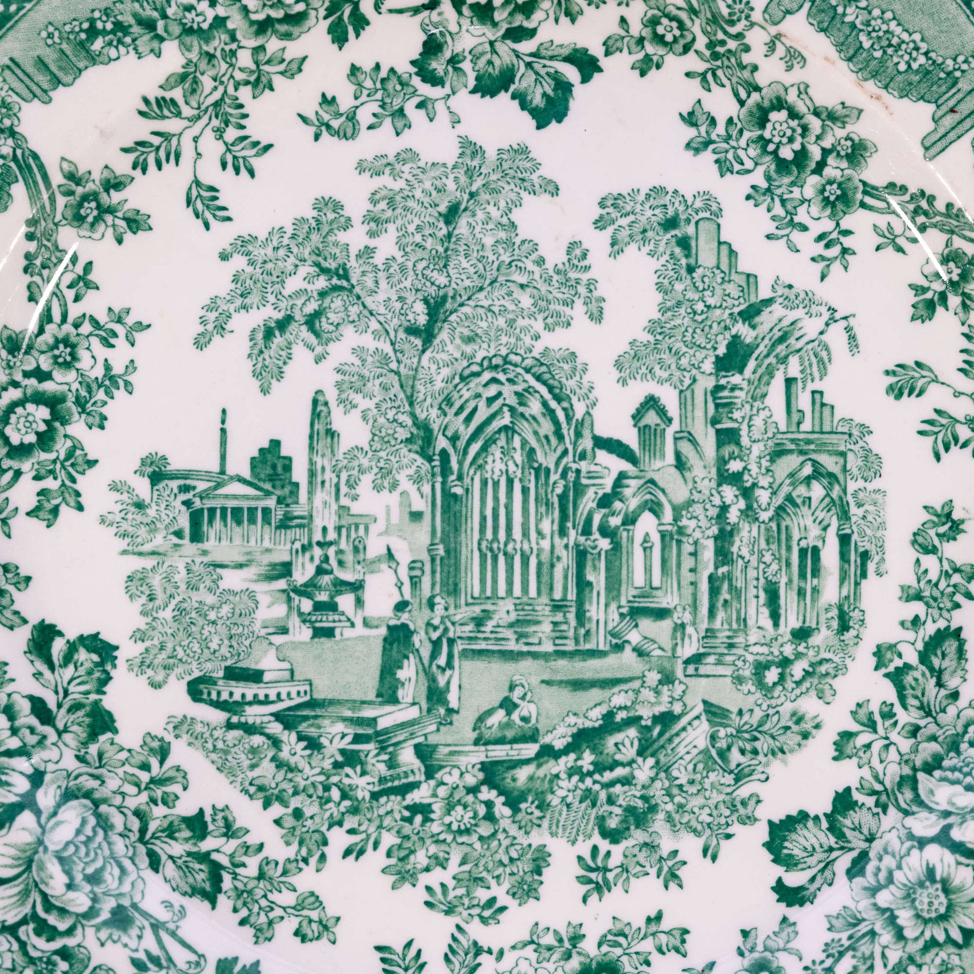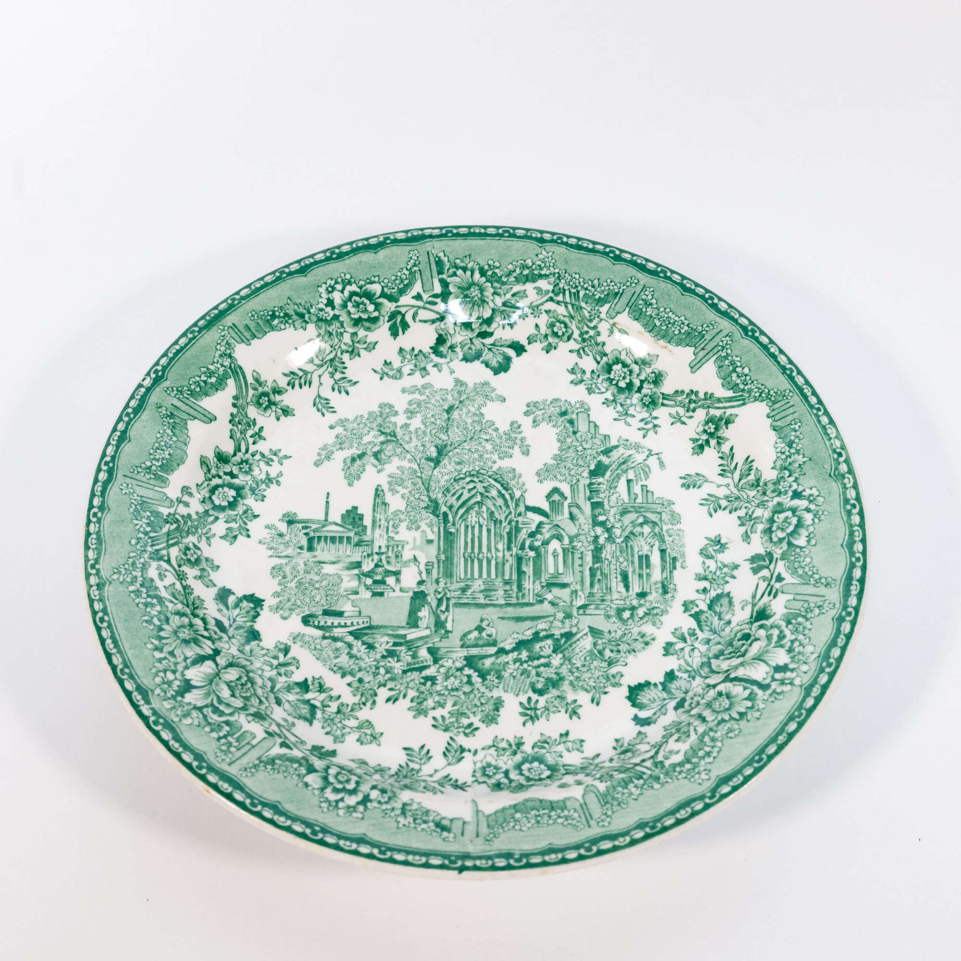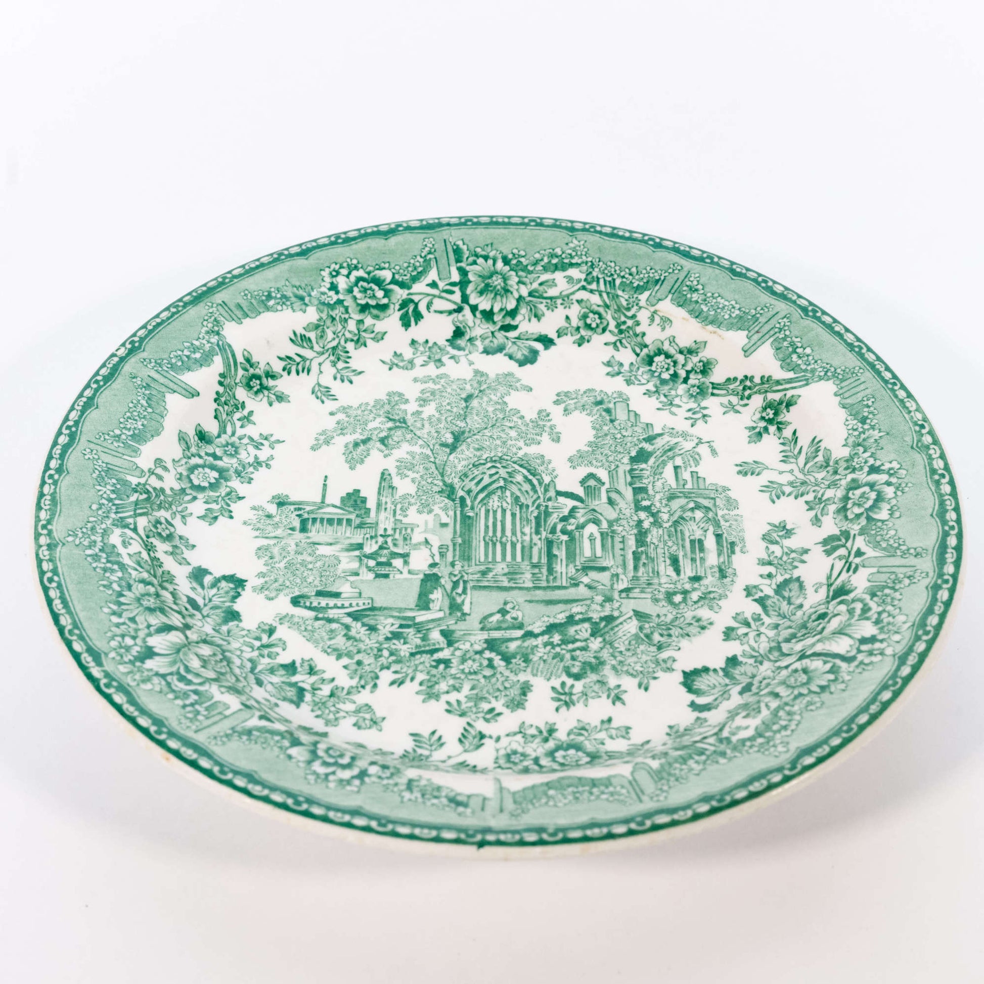 Vintage Dinnerware Buffalo China Green & White Transferware Plate
